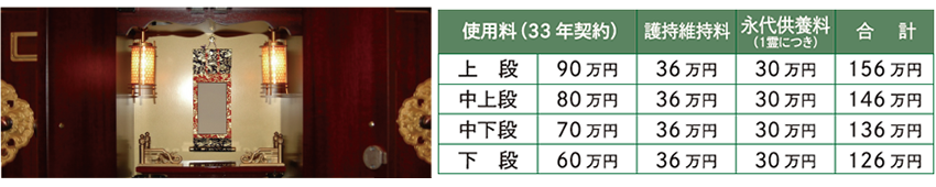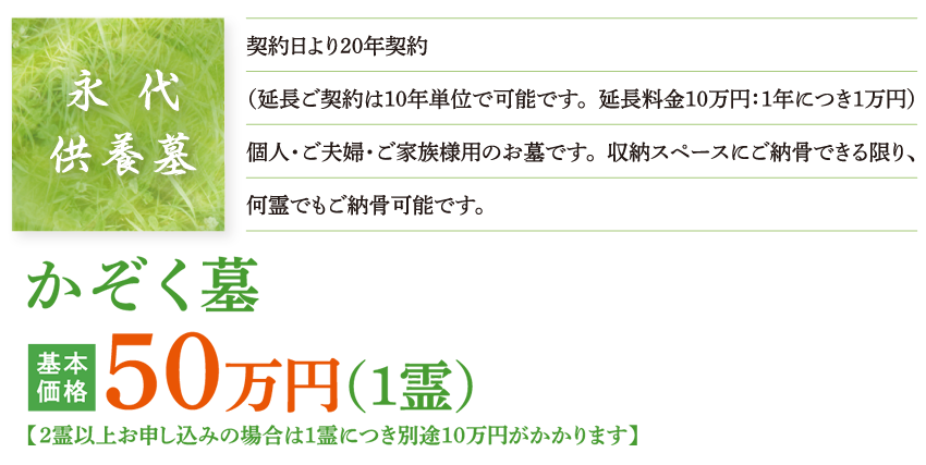◆料金には、墓地使用料・永代供養料(お布施)・墓石代・彫刻代・維持費が含まれています。