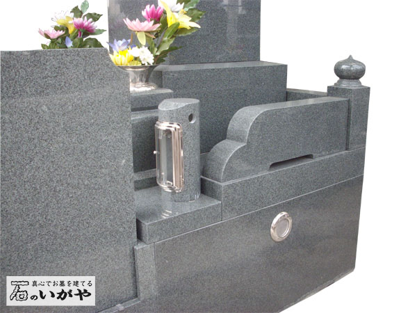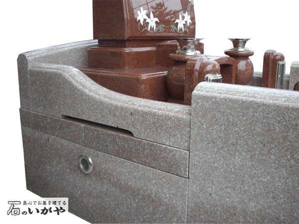 スペースの扉を観音開きにし、施錠ができるように工夫しております。石材は1種類の石材を