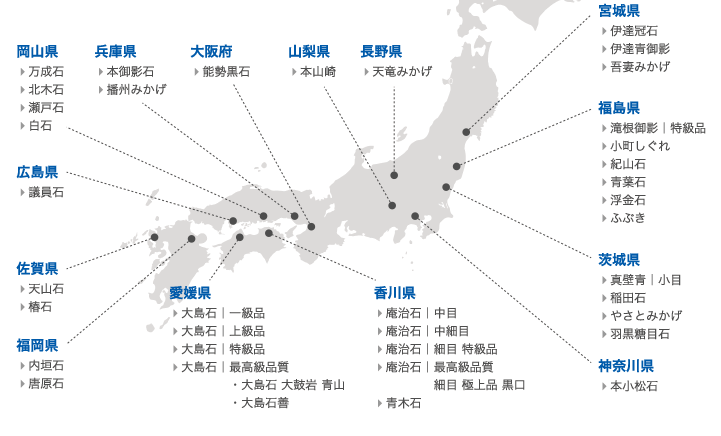 石のいがやが取り扱う「国内産」石種の産地外国産はこちら 広島県 岡山県 兵庫県 大阪府 長野県 宮城県 福島県 茨城県 神奈川県 香川県 愛媛県 山梨県 佐賀県 福岡県