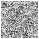 中目の白御影石で真壁石と似ている。石質は硬く、吸水率も低い。白黒の石目のバランスが良く、上品で美しい石目をもっている。