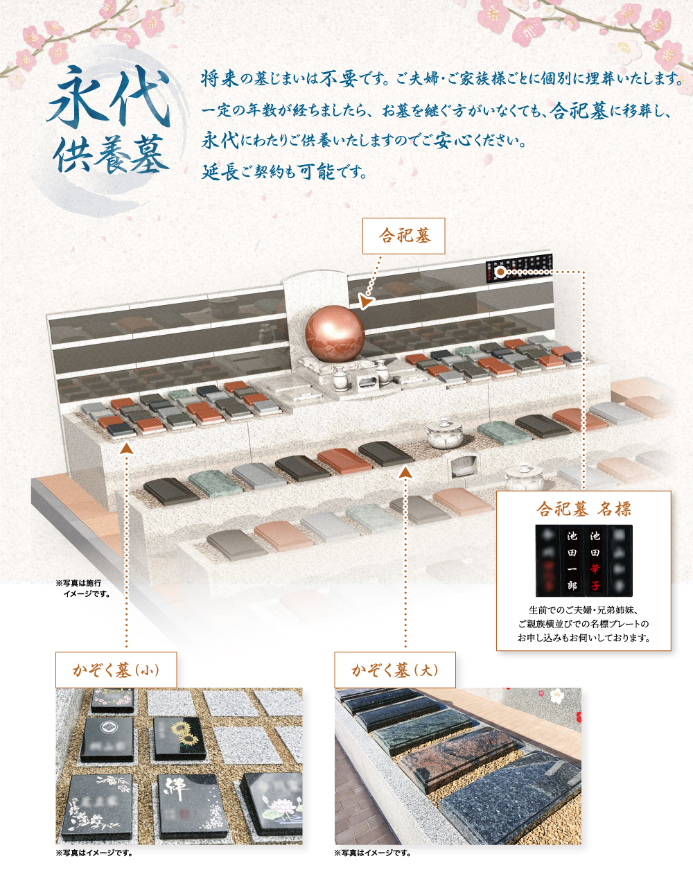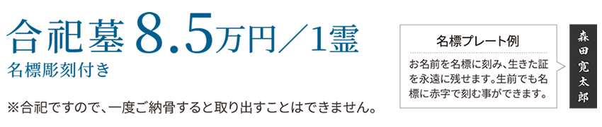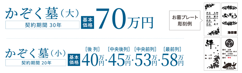 ◆料金には墓地使用料・墓石代・彫刻代・維持費・開眼納骨供養料が含まれています。